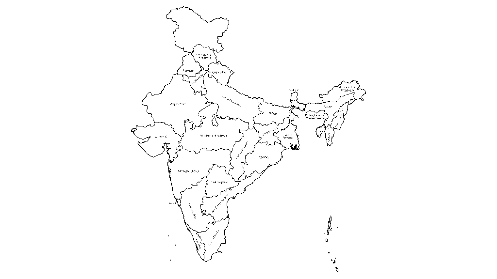 This version only highlights Indian states with their names labeled, along with the main outline of India.