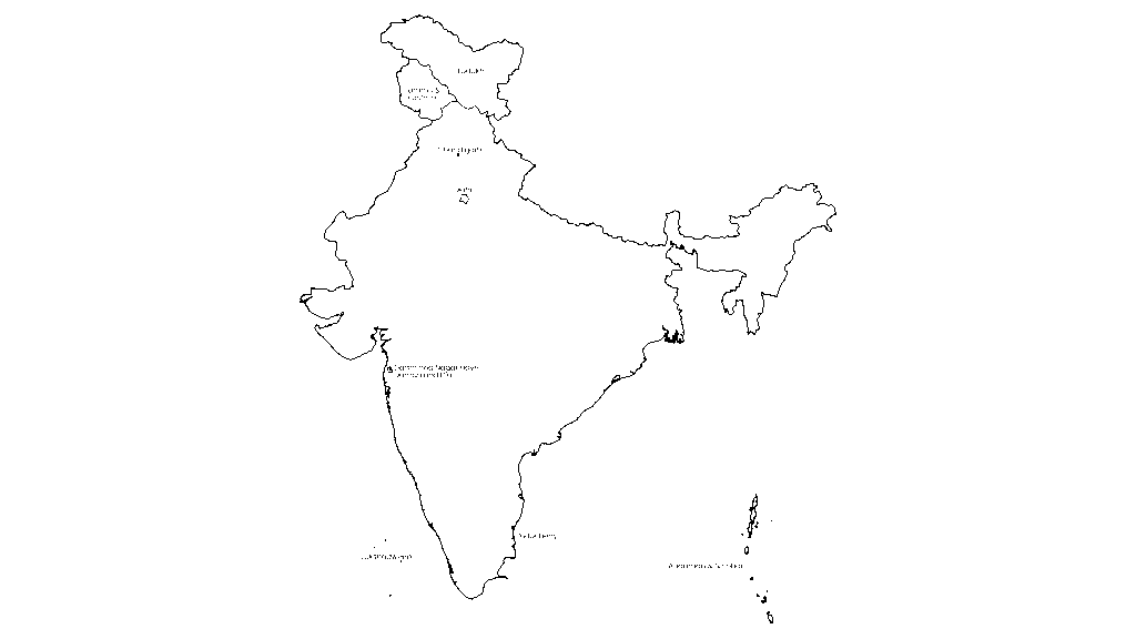 This map only focuses on India’s union territories, showing both the outlines and the names of UTs alongside the main outline of the country.